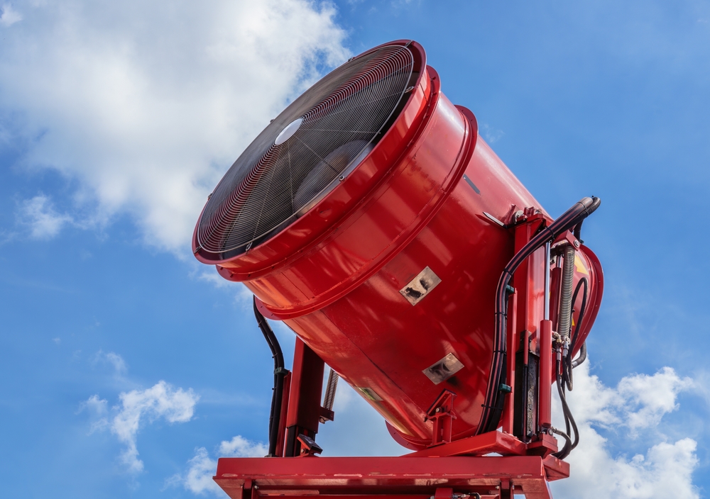 Leistungsstarke Lüfter, die von der Feuerwehr eingesetzt werden, um Frischluft in das Gebäude zu blasen und den Rauch zu verdünnen.
